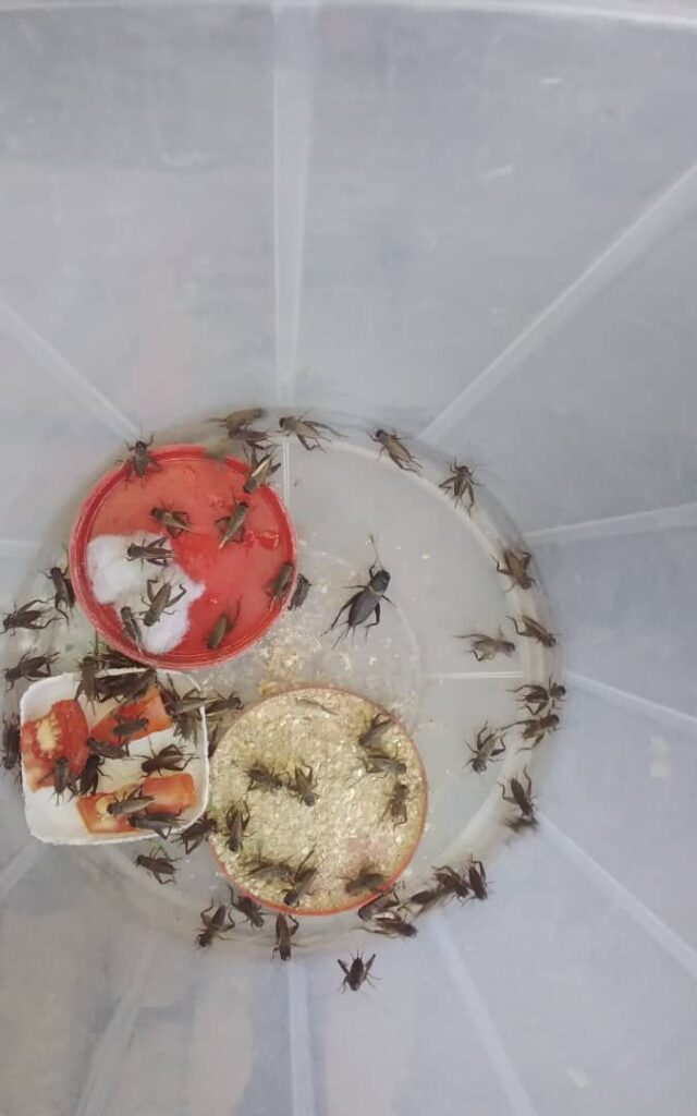 Crickets reach maturity within 6–8 weeks. At this stage, they can be harvested for household consumption, processing, or sale. Regular harvesting helps manage population density and improve productivity.
